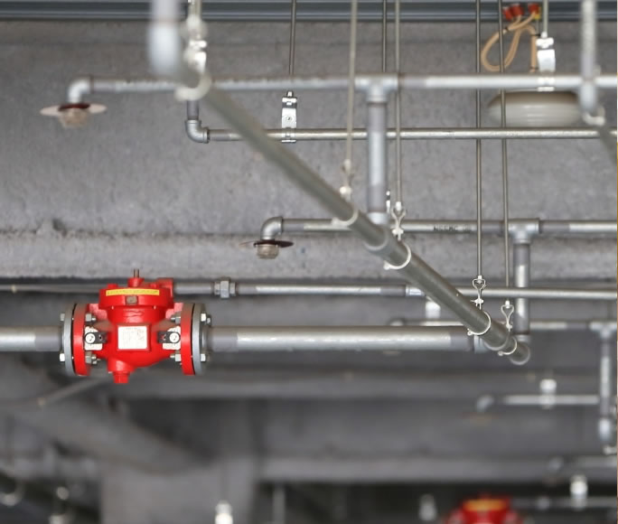 自動火災報知機による早期発見にはじまり、スプリンクラー等による初期消火、非常用放送による避難誘導、排煙設備による避難ルートの確保、防火扉による煙の遮断と延焼の防止等の設備を何重にも張り巡らせ、そのすべての連携プレーにより安全を確保するシステムを構築しています。