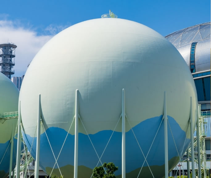 お客様の豊かな暮らしを実現するため、冷暖房、空調システム、熱処理・乾燥・冷却等の幅広いエネルギー源としてのガス設備を人・街・産業分野に供給。